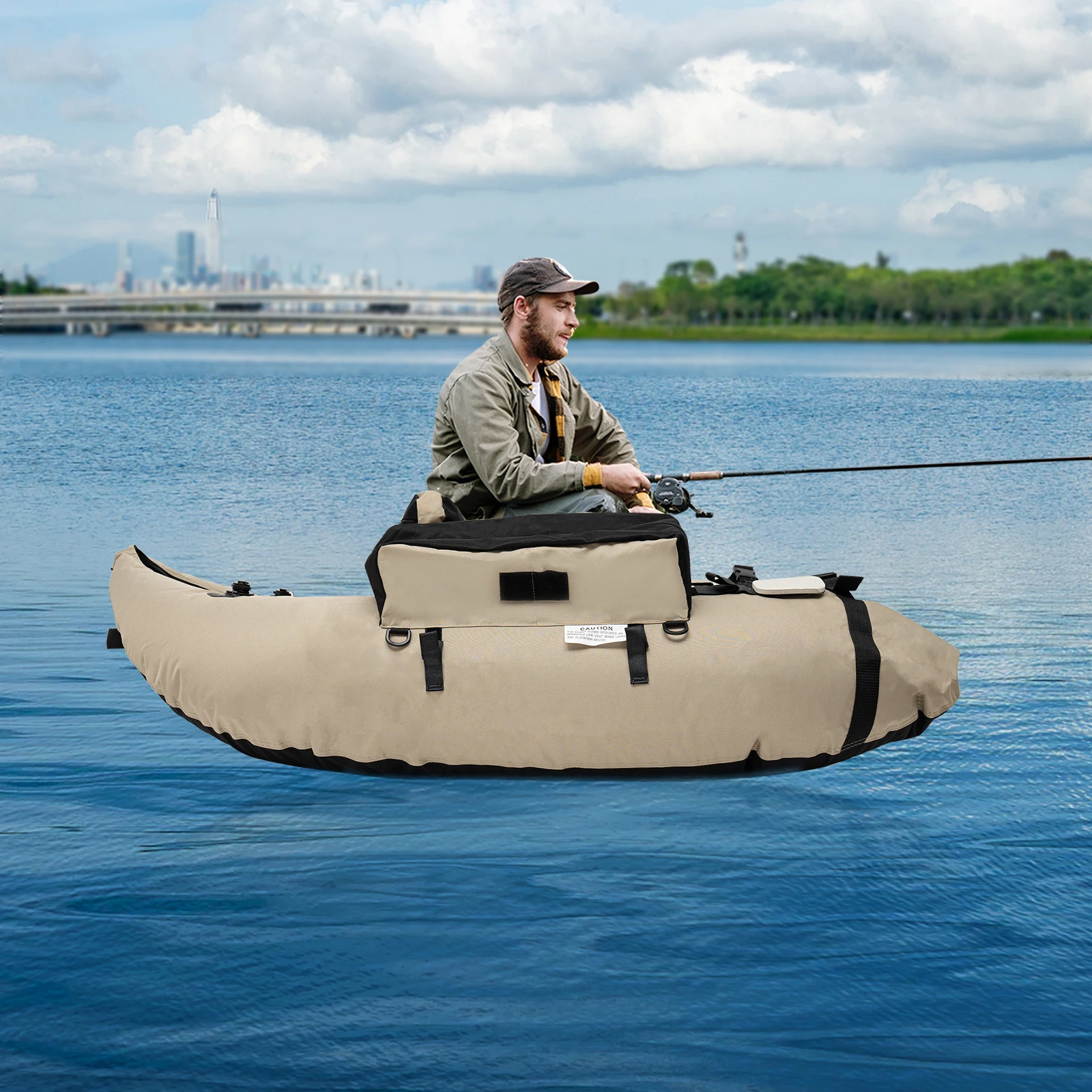 136*105cm Outdoor Khaki Inflatable Portable Fishing Boat Fit for Oceans Lakes Rivers for Rafting Exploring Fishing Accessories