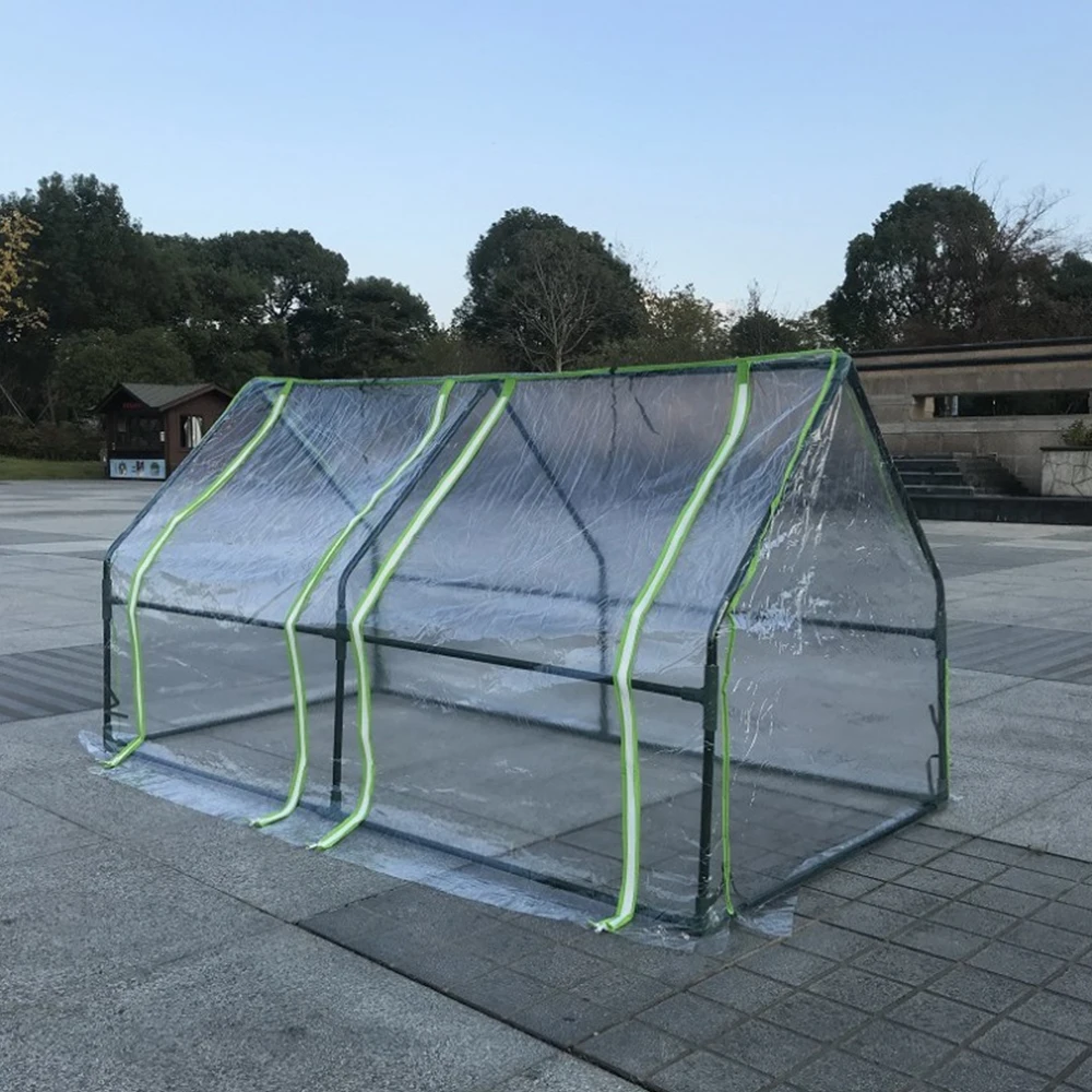 This portable greenhouse is made from durable plastic transparent PVC, as well as durable steel tubing and plastic corner connectors