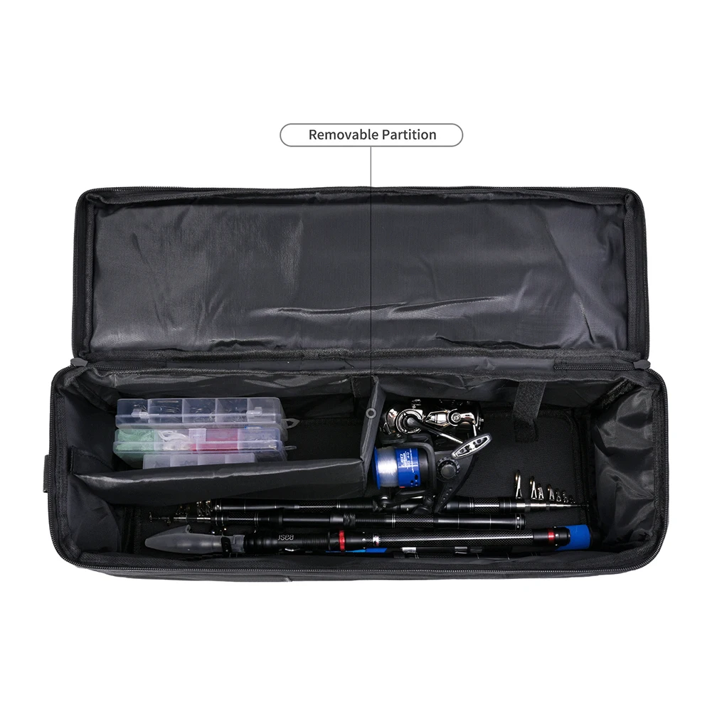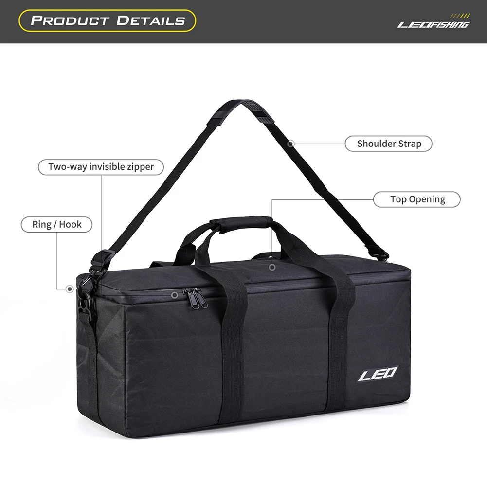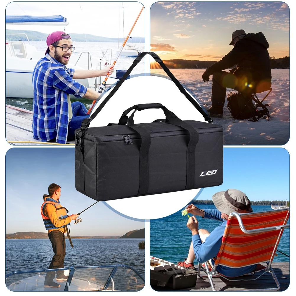 3. Organized Storage: The well-designed interior of this fishing tools carrier bag features multiple compartments and pockets to accommodate various sizes of fishing rods, baits, lines, hooks, and accessories. Keep your gear organized, easily accessible, and ready for action.