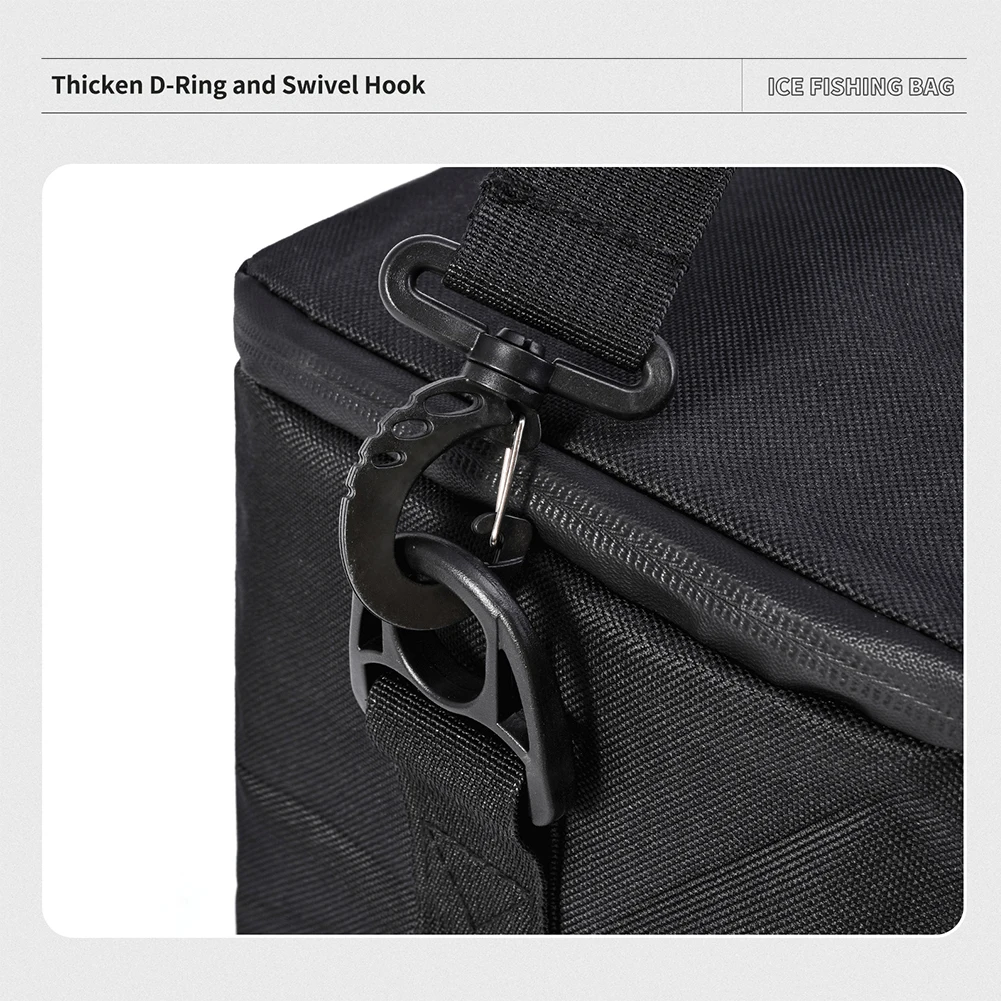 4. Insulated Performance: Equipped with built-in insulation, this portable ice fishing bag effectively shields your baits and other fishing gear from the cold air, maintaining their temperature and increasing the chances of successful fishing.