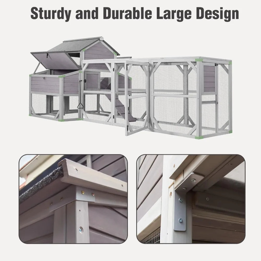 - Spacious design: Large chicken coop with integrated run provides ample space for roosting, nesting, and outdoor time for your flock.