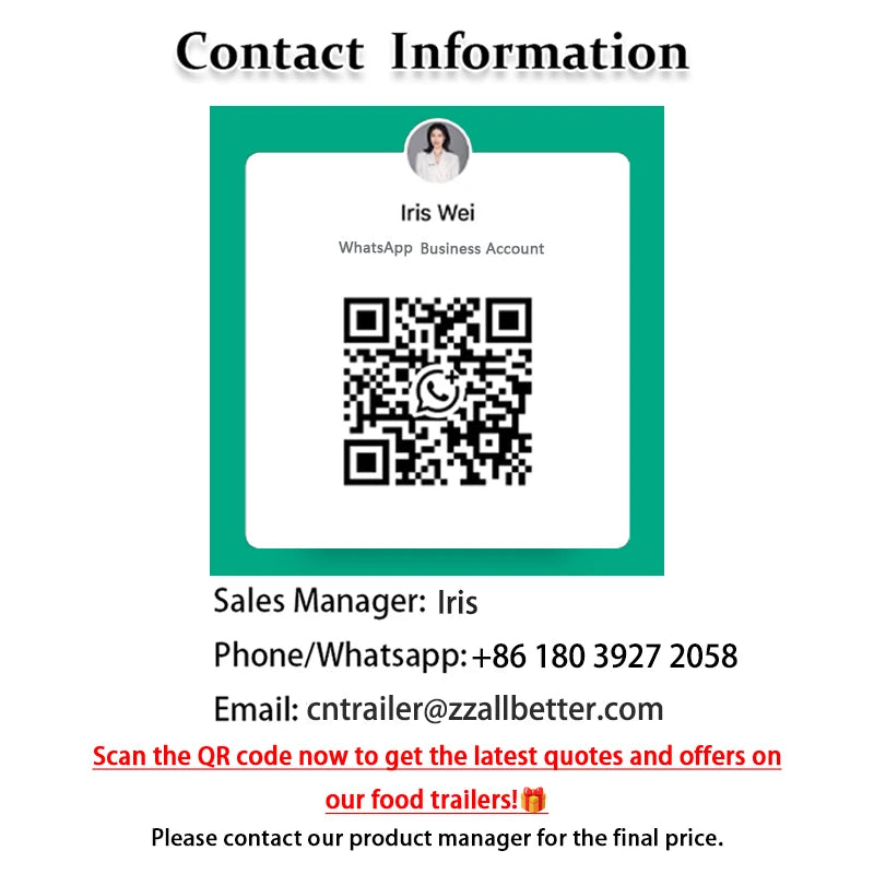 We will tell you the food trailers fully equipped mobile food progress every week, and send you multi-angle videos after the food trailers fully equipped mobile food is completed.