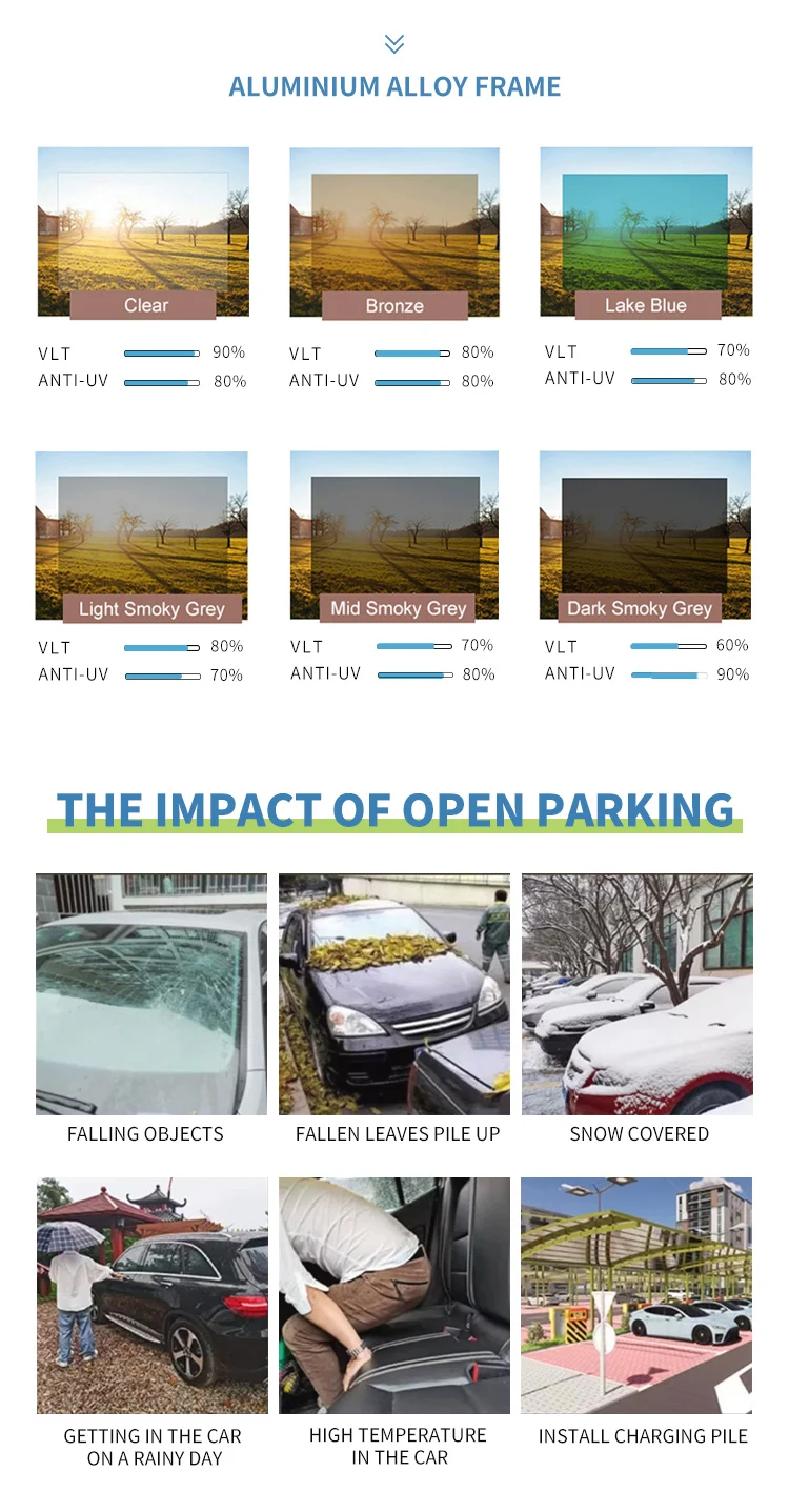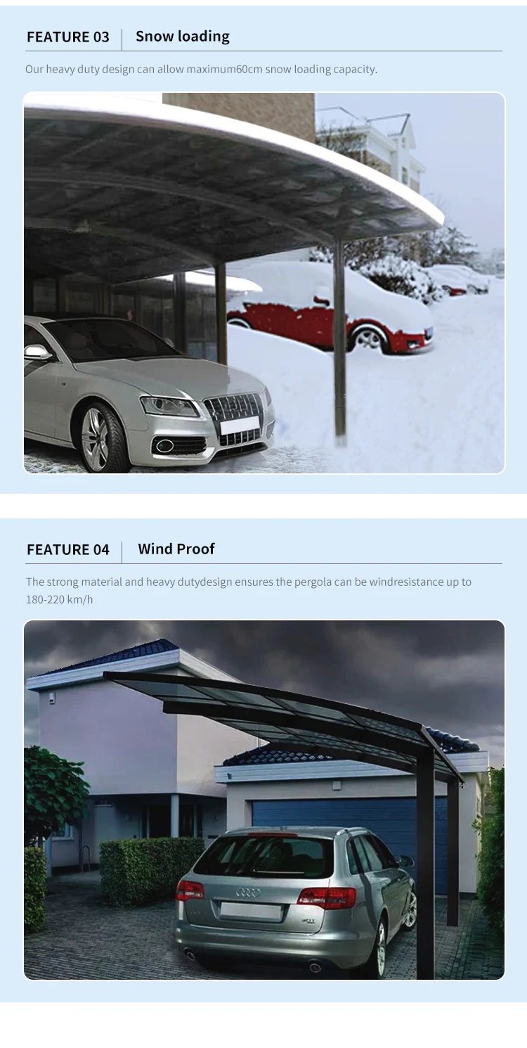 Modern Portable Metal Carport Outdoor Polycarbonate Roof Aluminum Frame PVC Material Pressure Treated Garage Parking