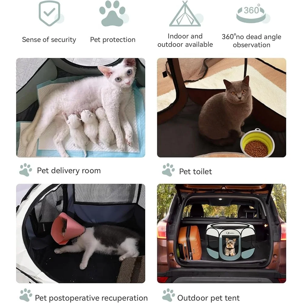 Portable Dog Cat Playpen Indoor Outdoor Puppy Tent Crate Play Yard Waterproof Foldable Pet Kennel Easy Setup 360 View