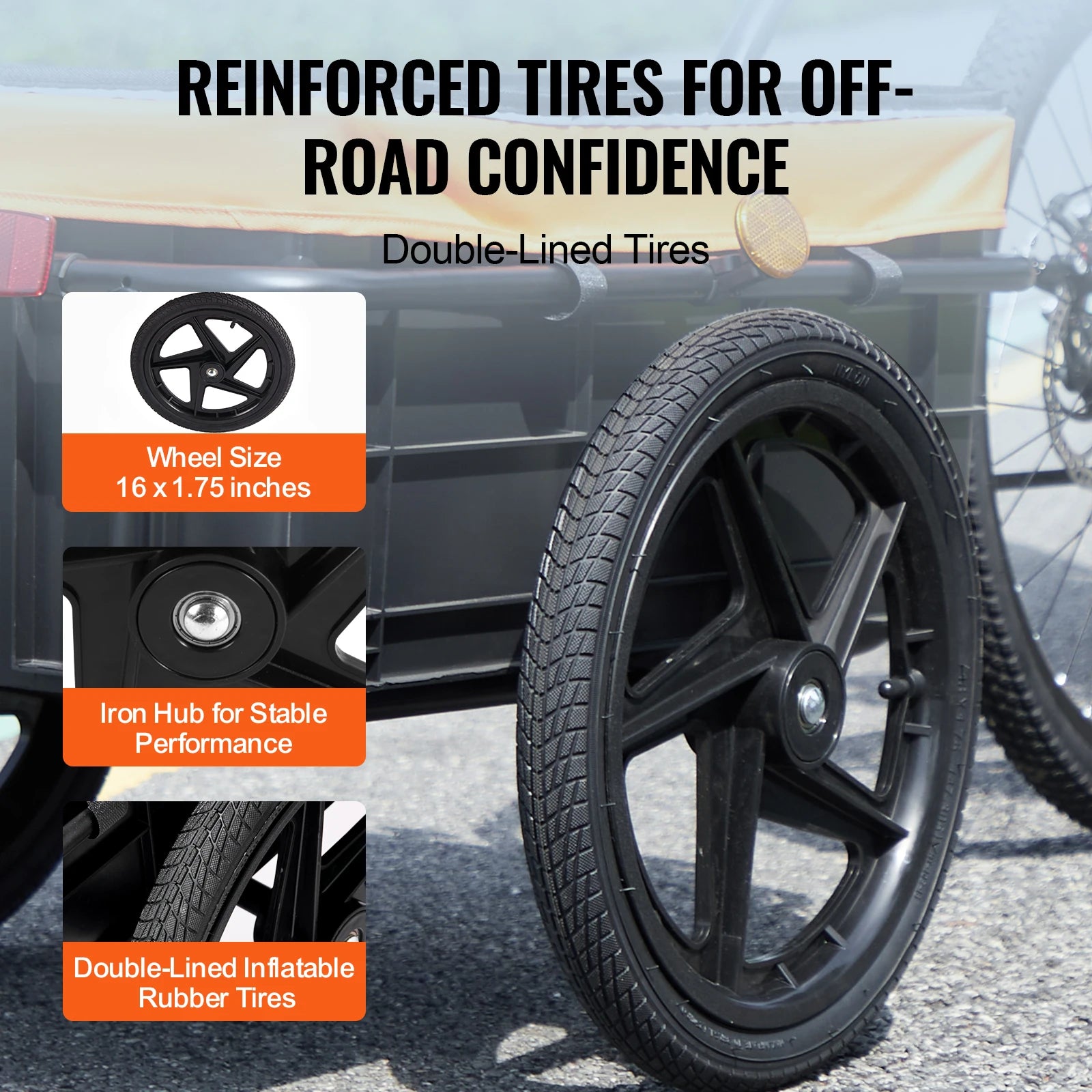 SucceBuy 88 Lb Bike Cargo Trailer — Sixteen Inch Wheels is a rugged, versatile trailer designed to expand your biking adventures by carrying kids or cargo behind your bicycle. Built for durability, it combines a sturdy metal frame with protective fabric and thoughtful details to keep your loads secure on the road.