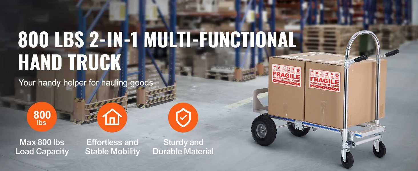 Load Capacity: 800 lbs/363 kg (Platform Truck); 550 lbs/249 kg (Hand Truck)