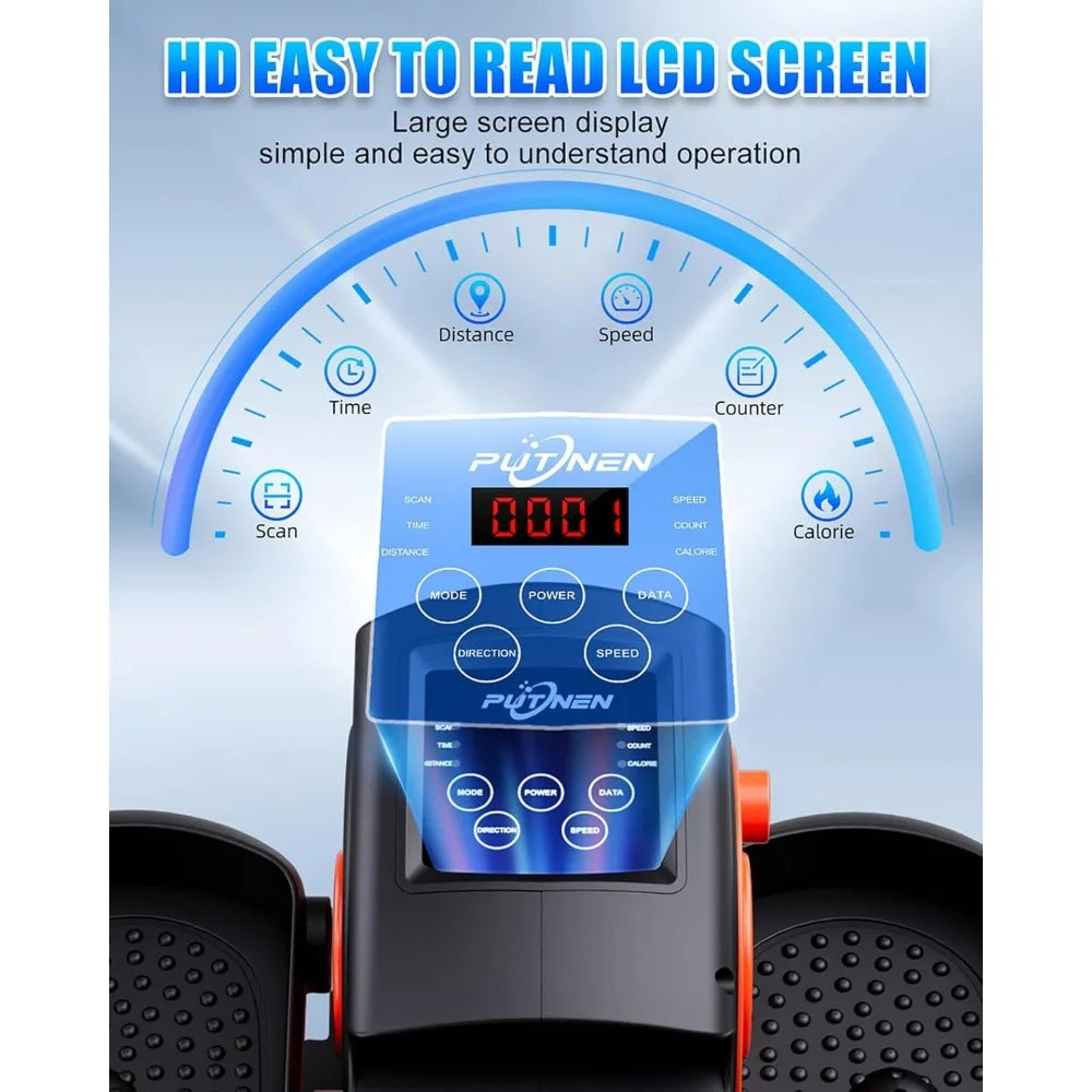 - 【SILENT EXERCISE & EASY TO MOVE】Elliptical exercise machine features a silent wheel and advanced sound-dampening technology, so it is working quietly without disturbing others, making it ideal for home and office use. Its compact design and portable features allow you to exercise anytime, anywhere.