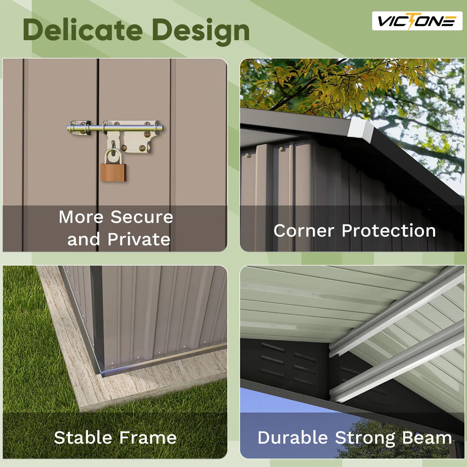 Victone 6x4 Metal Outdoor Storage Shed in a classic brown finish offers a rugged, weather-ready solution for organizing tools, garden equipment, and outdoor essentials. Crafted with a sturdy metal frame and a waterproof design, this shed is built to stand up to the elements while keeping your belongings protected.